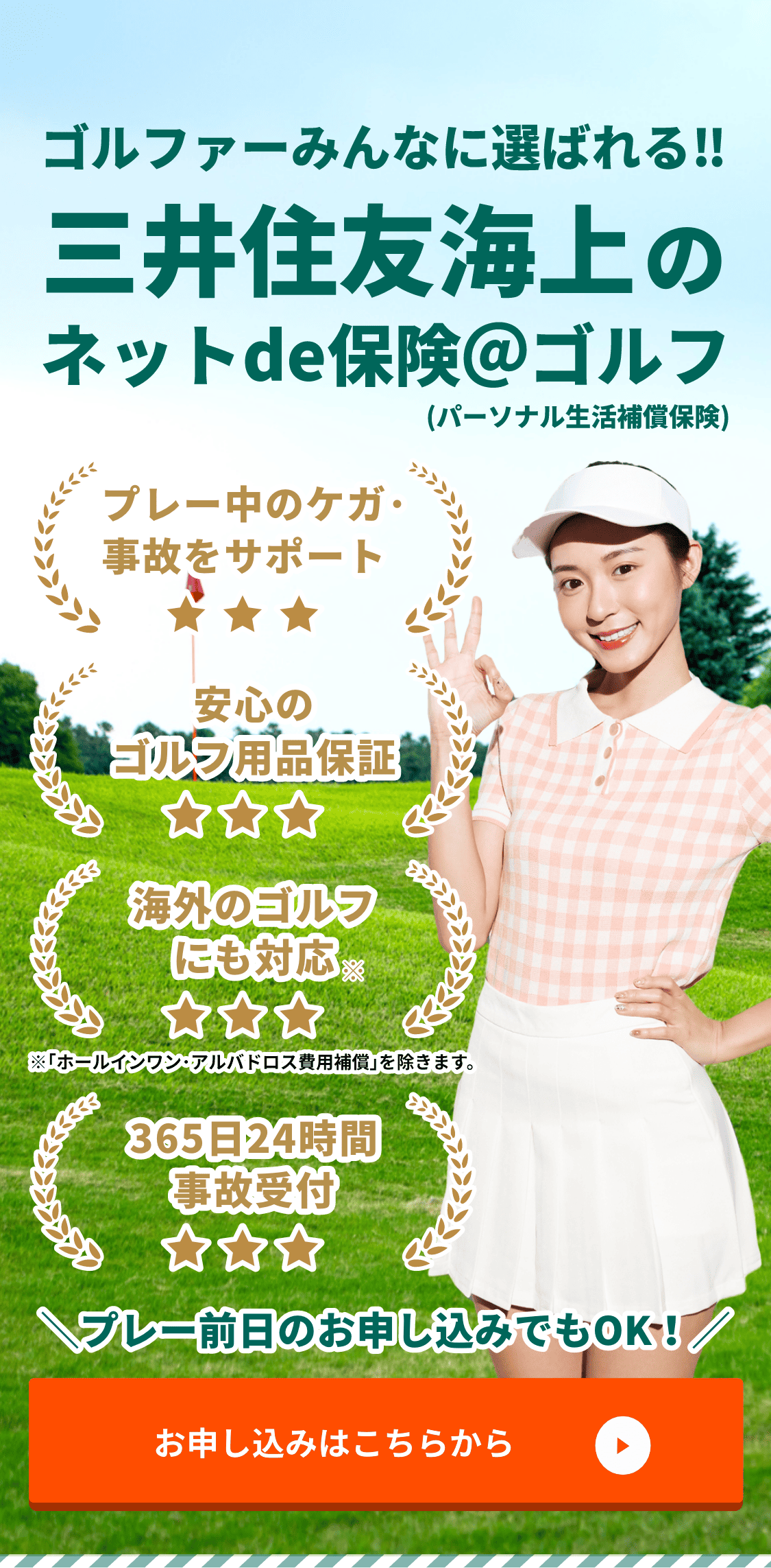 ※「ホールインワン・アルバドロス費用補償」は、海外でのプレーは対象外です。